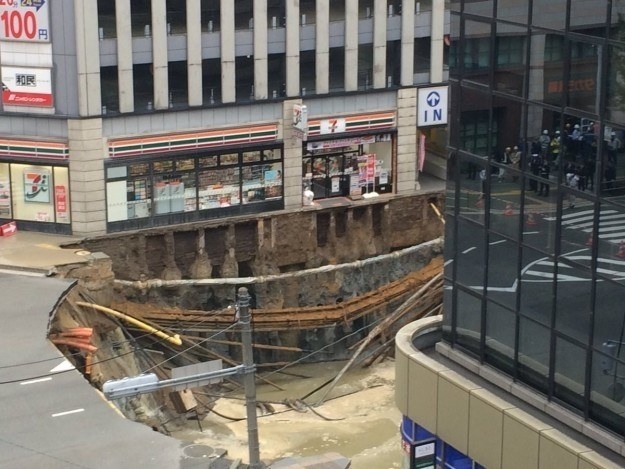 東京NOW>>16 별로 어려운거 아니다 파열된주위 파낸후 상수도관 잘라내 고 상하수도관 연결해