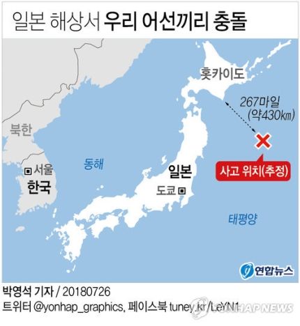 【聯合ニュース】北海道の南で韓国漁船2隻が衝突 3人行方不明
