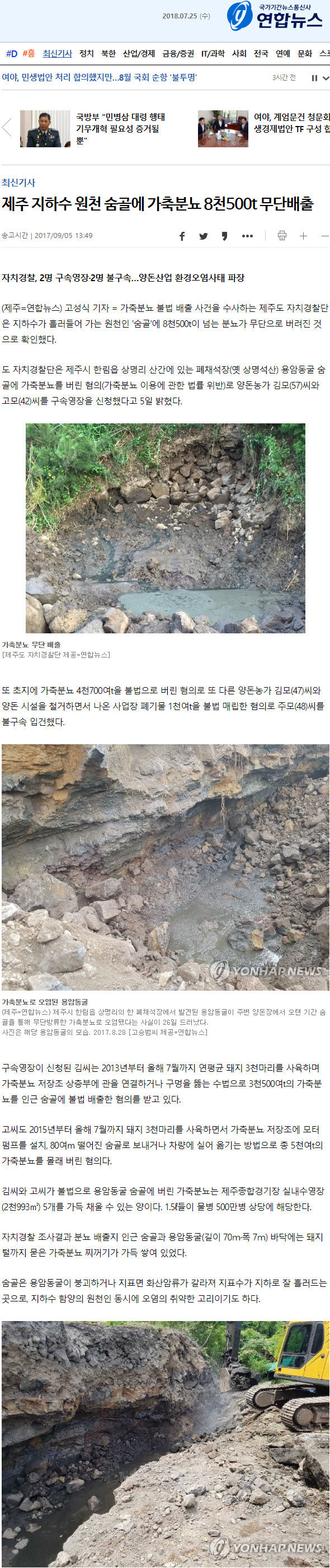 昨年夏の雨が降った6月26~30日以降、7月1日に開場した洪川郡の水遊び場で、子供たちが嘔吐や腹痛を訴えたことも畜産廃水とは無関係ではないと住民たちは疑っている。(略)
