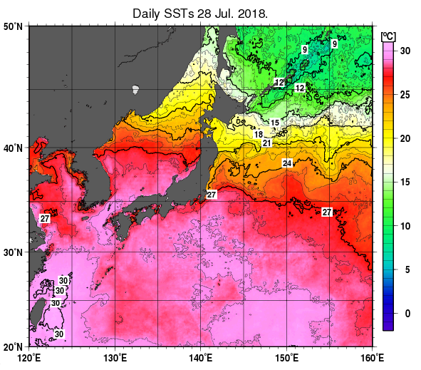 日本は台風に吹き込む南風で、特に西日本の日本海側が異次元の暑さになるかも?