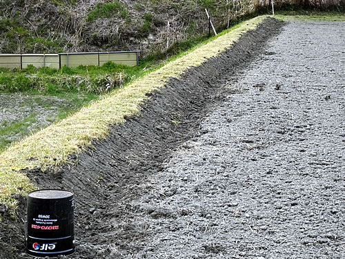 ちゃんと作った土手なら、もっと持ち答えただろう盛った粘土の吸水性とか粘性みたいなものが低かったとかありそうだよなー粒が荒すぎるとか