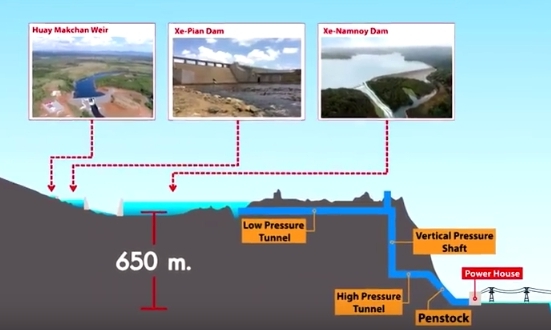 水源が2段になっていてXe-Pian DAMで繋がっている。