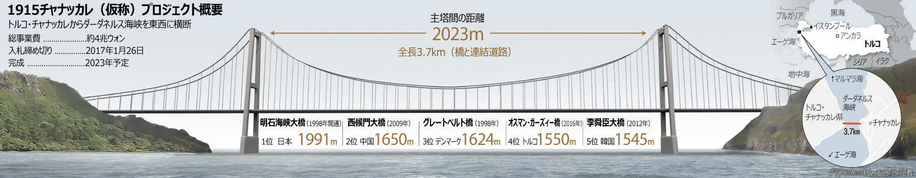 ラオスで予定より早くダムを完工したSK建設が、トルコでも早期完工を謳いダーダネルス海峡大橋を受注