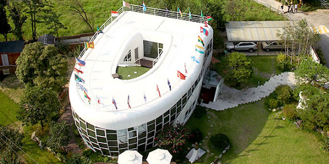 3つめの写真、トイレの形をした建物は、世界トイレ協会の会員で協会の設立に協力した、元水原市長の自宅だそうです。