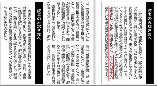 ・吉田の証言に”ついて”の記事だけを捏造であったと認めて謝罪しているのは事実。