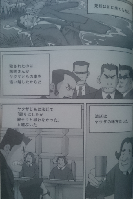 (日本人マニュアルでの論点は、遺族が裁判に参加できないなど『被害者側の権利』です。法廷や判事がヤクザに負けたなどのような書き方はしていません)