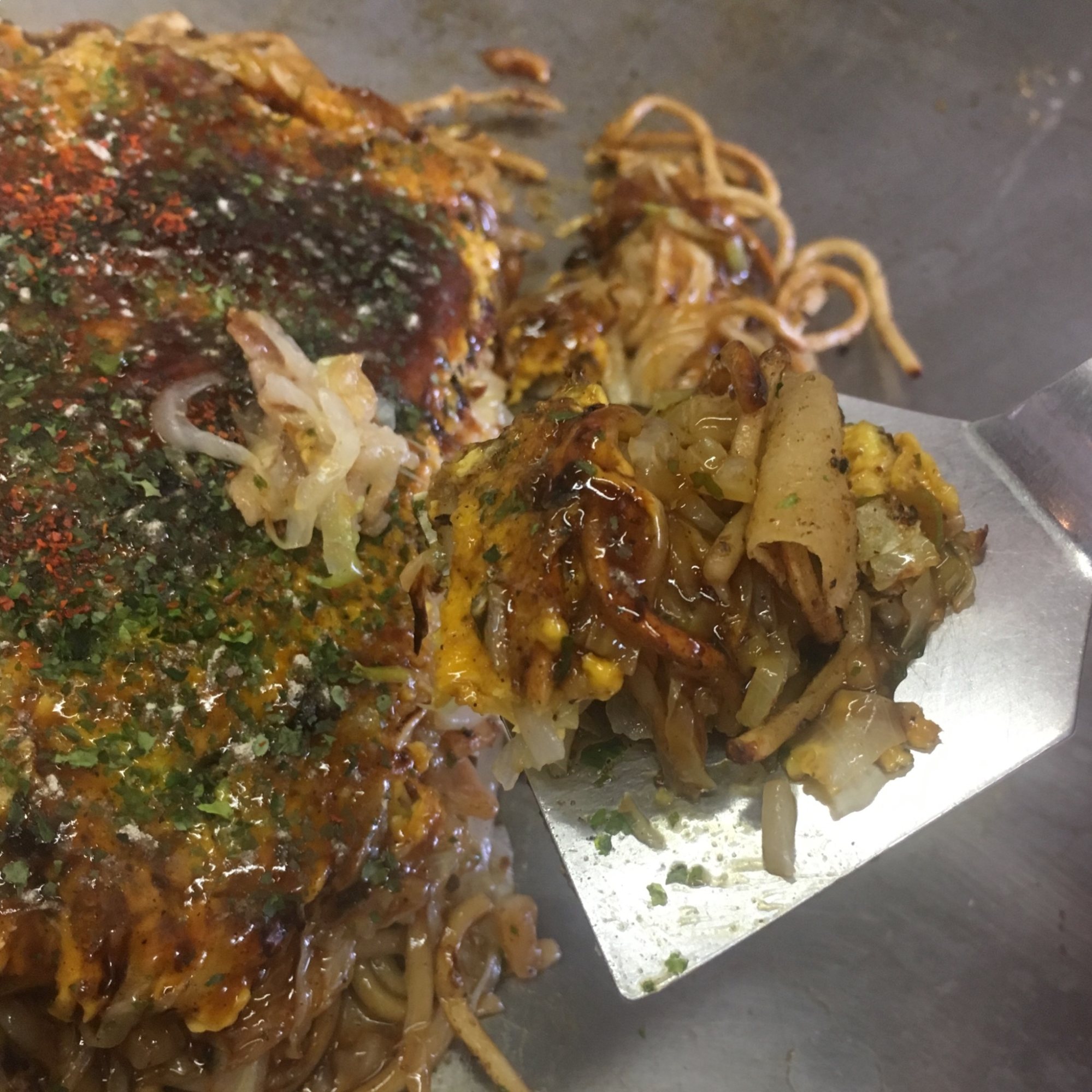 てっきり、お好み焼きに焼きそばが乗っているのかと思ったwww。