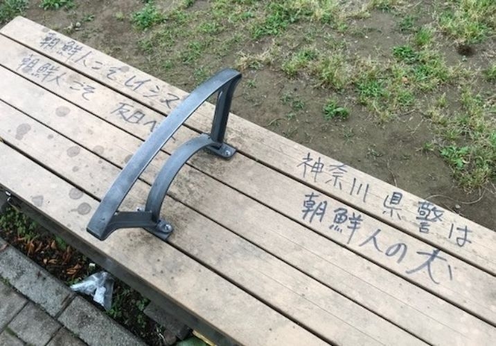 【時代の正体取材班=石橋 学】川崎市は7日、同市高津区の五つの公園・広場のベンチなどで在日コリアンを差別する落書きが見つかった、と発表した。同じ筆跡で「朝鮮人こそレイシスト」「朝鮮人こそ反日ヘイト」「神奈川県警は朝鮮人の犬」などと書かれていた。市は器物損壊容疑で高津署に被害を届け出た。