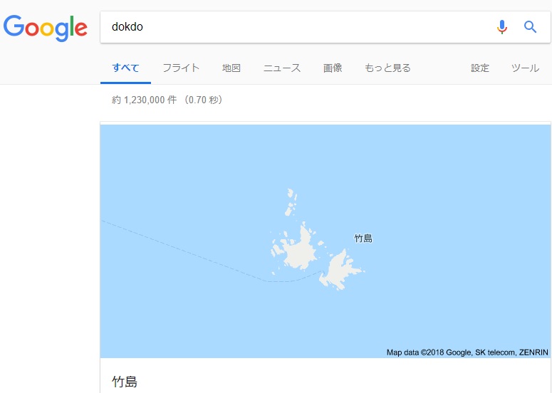 しかし、今でも独島の所属を検索すると、韓国のGoogleは何の表記がなく、米国では「日島根県隠岐」に浮かぶ。
