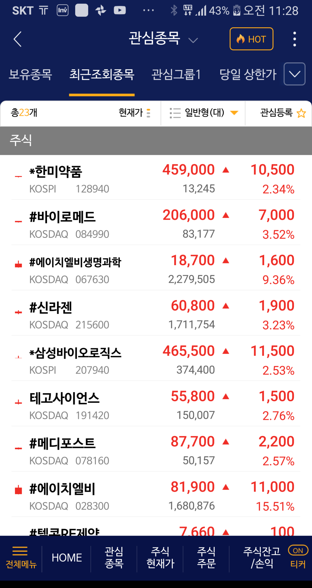 현재 삼성의 바이오 25조원 투자소식에 한국 바이오 주식들 폭등중..