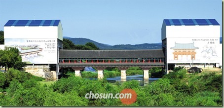 慶尚北道慶州市南天の上に国籍不明の脚が入っている。長さ66.15m、幅9m。来年の年末までに門(門樓)工事が完成する月浄橋(史跡第457号)である。新羅王京の重要な遺跡整備・復元事業の「1号」だ。