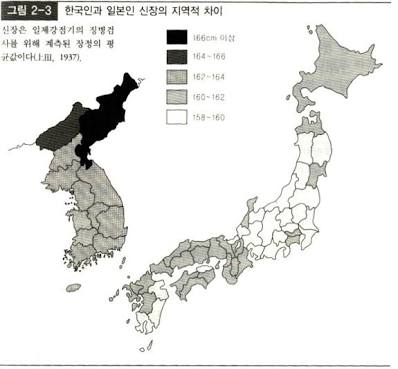 高麗大学医科大学解剖学教室のユ・イムジュ教授研究チームによると、日帝強占期の1930年代に生まれた韓国人に比べて1970年代に生まれた韓国人の方が、頭蓋腔の体積、頭蓋骨の高さ、幅など全般的な頭の大きさが6%ほど大きくなった。