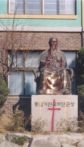 기독교인들은 단군 동상을 훼손하지만 위안부 동상을 훼손하지는 않다