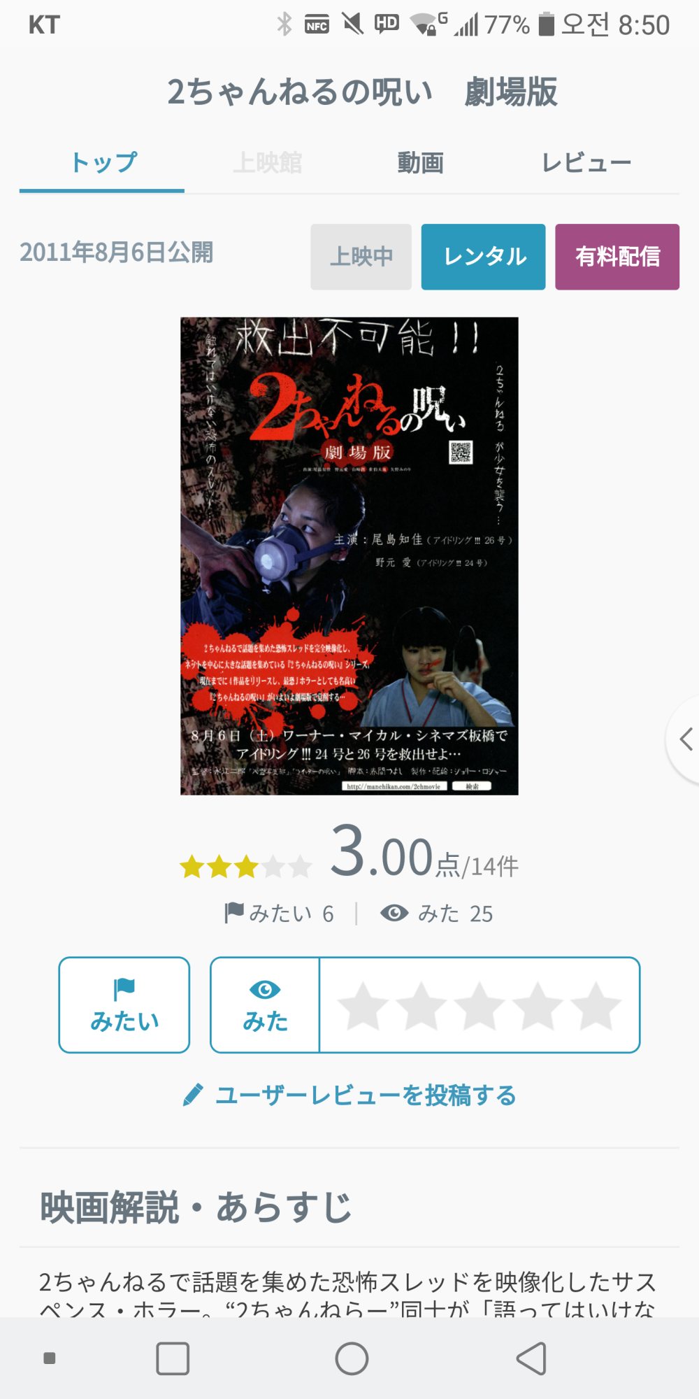 2ch의 저주라는 일본 영화 재밌어? 결제해서 볼까 말까 고민 중인데