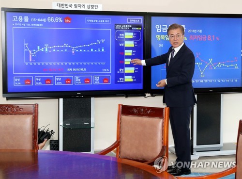 「文大統領が公約実行 執務室に雇用状況示すモニター設置」