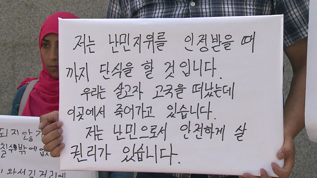 「韓国政府は手続きをわざと遅らせながら難民申請者たちを徐々にコロシています。韓国政府が韓国法による権利を守る時まで、断食を続けます」
