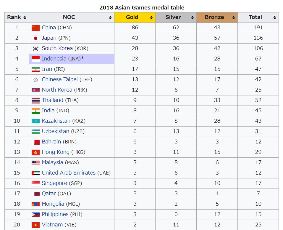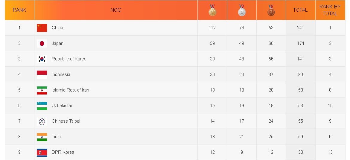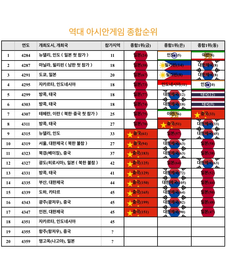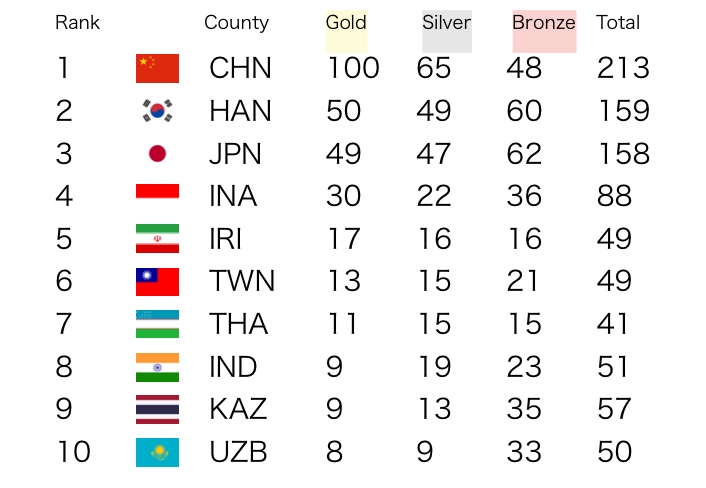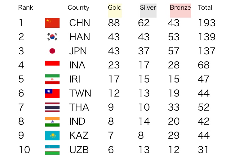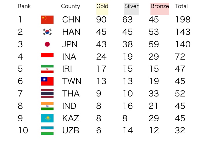 歴代アジア大会の総合順位を見てみよう