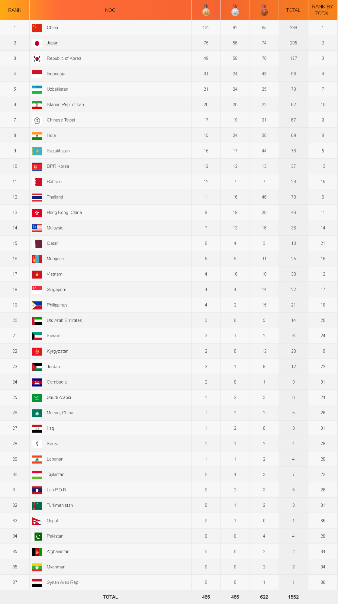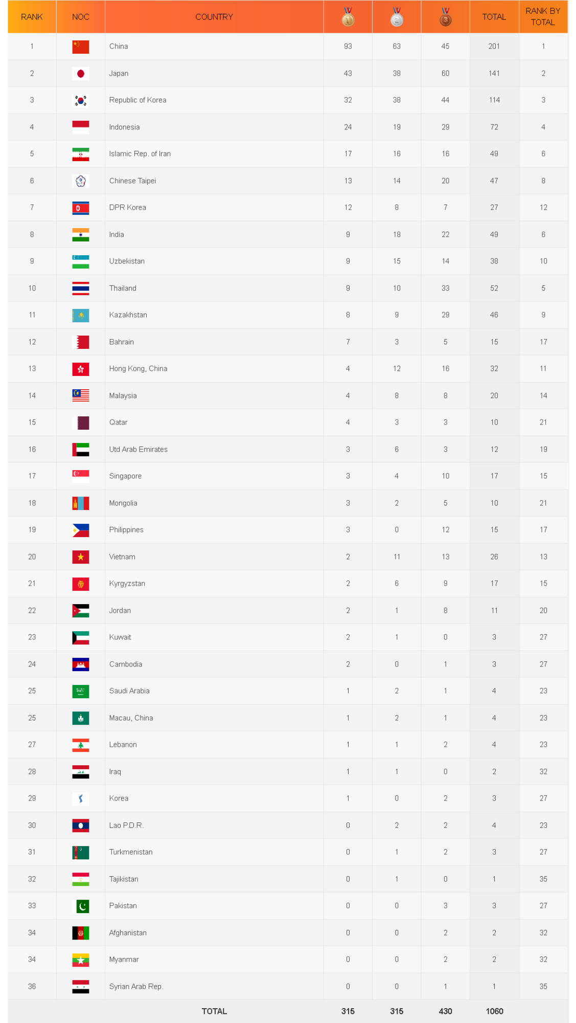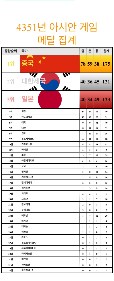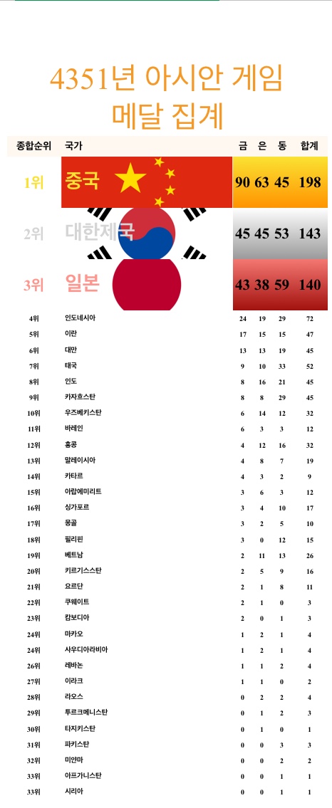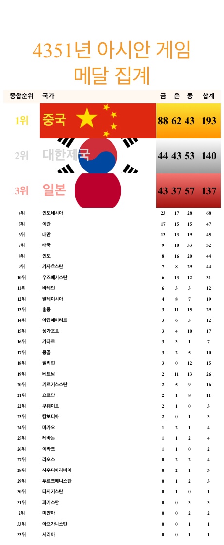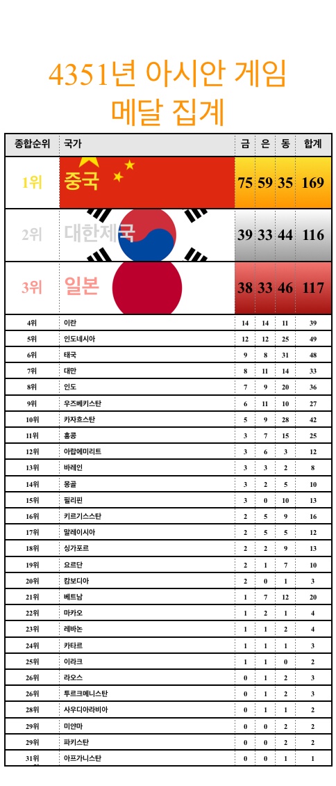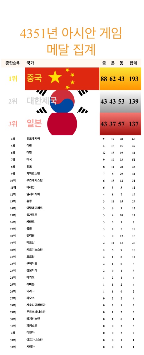 さすが、「朝鮮」人だスレ主は、南北合計の最終的なランキング表を貼らないのか?