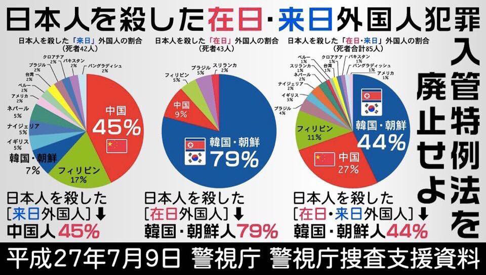 2名無し2018/08/25(Sat) 09:11:29ID:E2MjUzNTA(1/5)NG報告>>1残念ながら、その理由は成り立たない。なぜなら、韓国人に殺害される日本人の方が圧倒的に多いから。>>722
