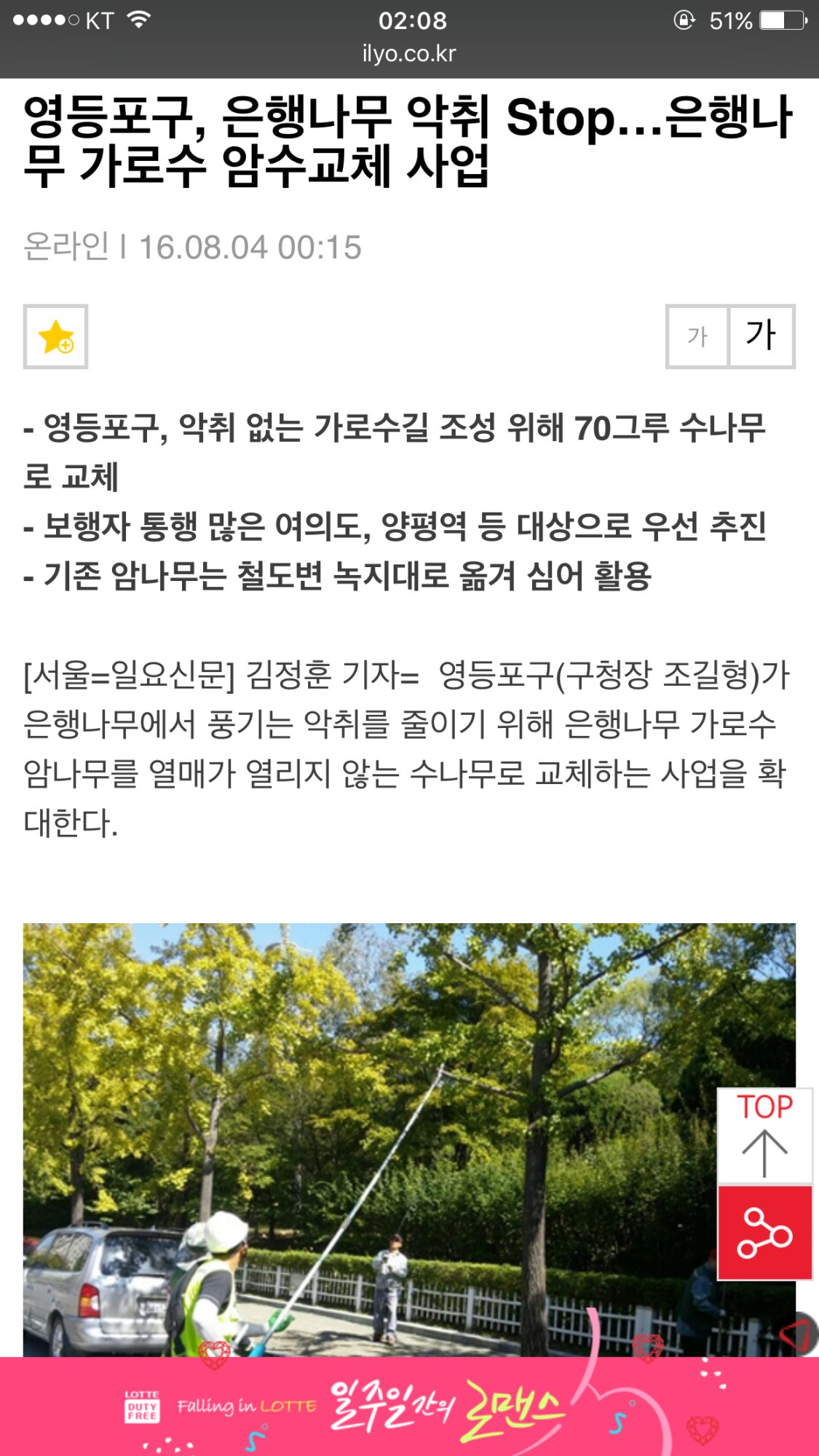 이 링크는 최근 수나무로 교체한다는 영등포구なるほど! 落葉樹は掃除が大変で面倒じゃないかと思ってたが、陽当たりを良くするのか!