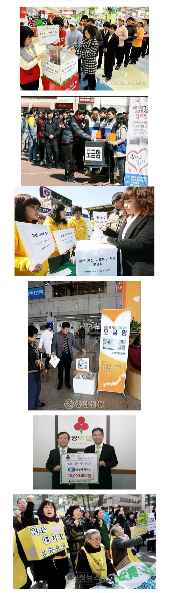 韓国人は嫌な人ばかり2011년 동일본 대지진 당시 한국은 일본을 도우려고 구호물자와 모금운동을 진행했음.