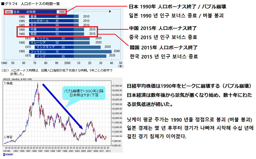 つまり、これから日本のバブル崩壊(人口ボーナス終了)で「失われた20年」と同じ