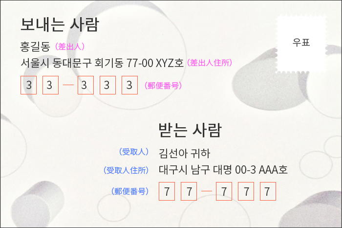 日本人がある韓国人に脅迫文を国際郵便で郵送するという設定であるから、韓国の郵便の書式や様式や慣習に