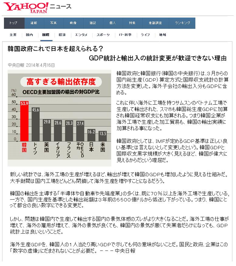 韓国の数値は、GNPに近い数値のようですね。貿易依存が高い国の場合、GNPの数値はGDPの数値より