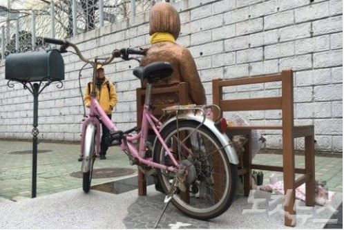 自転車の盗難防止用にチェーンロックされていて慰安婦像も社会の役に立ってるじゃんw