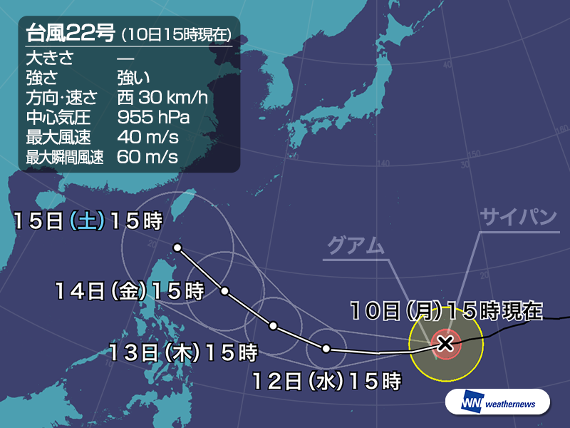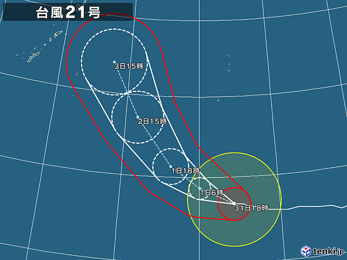 台風21号は「猛烈な」勢力に発達しています。1日(土)に発達のピークを迎えそうです。4日(火)から5日(水)にかけては列島へ接近、上陸の恐れがあります。
