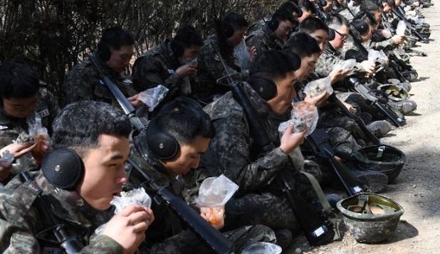 韓国軍てのは、「食」(こういう場合、日本じゃ「しょく」って読むんだぞ。)の大切さというものを重視していないのか?これじゃあ、餌だろ。味だけでなく、見た目の良さだって大切だぞ。若者を徴兵制で無理矢理軍隊に入れて、それまでの日常生活の楽しみを取り上げた上に、食べる事の楽しみまで奪ったら、兵隊の士気は下がるのは当然。自衛隊も米軍も、世界中の軍隊も、「食」を非常に重要視しているぞ。外人部隊だって、それが当たり前。中国みたいな共産主義国でなければ、新兵から指揮官まで、皆、同じ物をたべている。「贅沢は敵」「欲しがりません勝つまでは」じゃあ、いつまでたっても負け組のままだぞ。