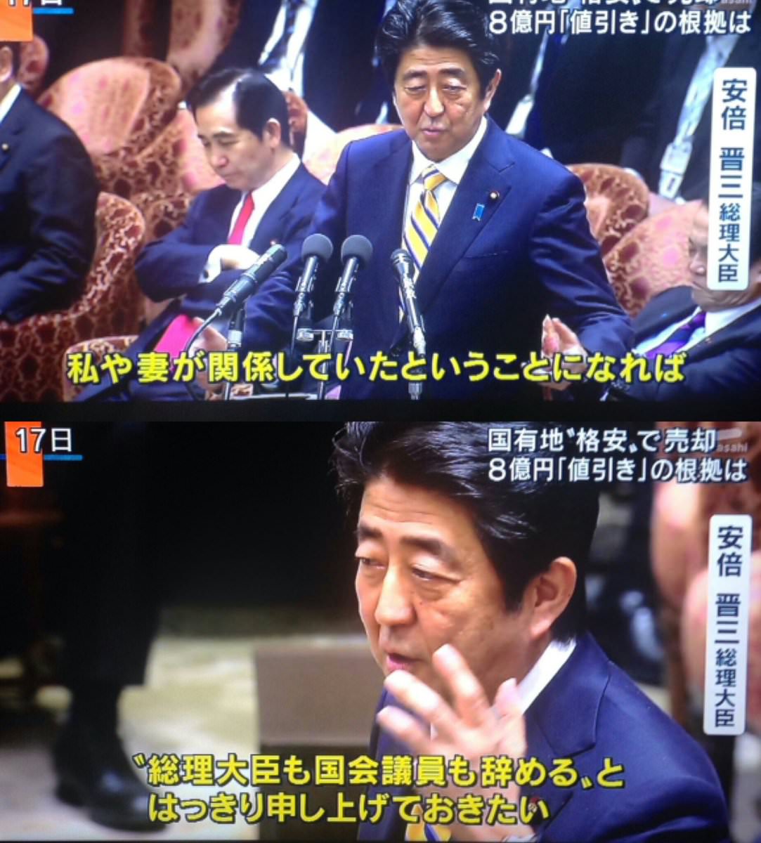 「私や妻が関与していたのなら私はそれを止めます、議員バッチも外します」。