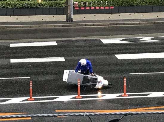 영상 속 배달부는 오사카로 추정되는 지역에서 피자배달을 하고 있다. 태풍의 영향 때문인지 도로는 텅 비어있다. 텅빈 도로 속 홀로 고군분투 하는 배달부, 그러나 ‘제비’는 배달부에게 배달을 허락하지 않았다.