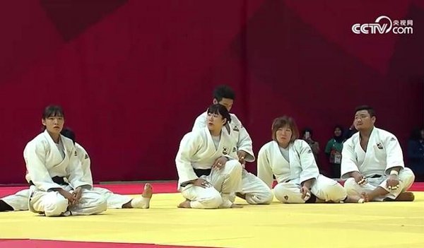 アジア大会で柔道で日本に負けた韓国人が座り込みをしたという記事。