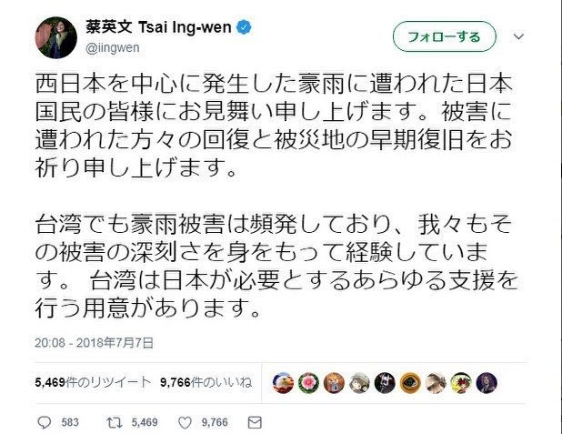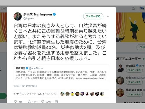 台湾の蔡総統のメッセージは日本語で日本国民に直接宛てたものだった。感動した。