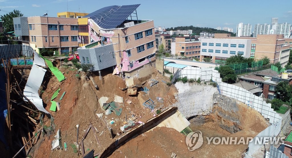 ソウル銅雀区上道洞現場擁壁崩壊に大きく傾いたソウル賞幼稚園がひどく毀損部分が、とりあえず撤去される予定である。