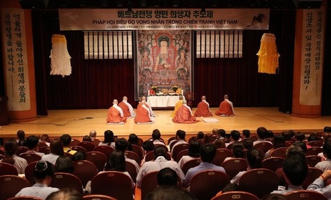追悼祭に出席した韓国の僧侶たちは、ベトナム犠牲者の極楽往生を祈願し、韓国政府の徹底した真相調査と賠償を要求した。