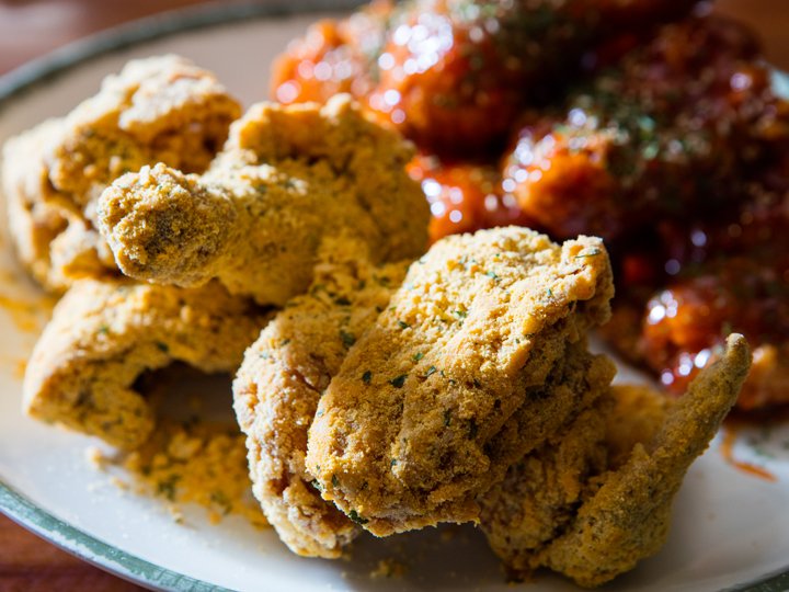 フライドチキンの上にほんのり甘い粉チーズを雪のようにかけた「スノーウィングチキン」が人気!