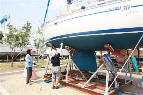 ヨットは荒波・風に露出し、自動車とは違い持続的で体系的な修理・整備が要求されるが、国内マリーナにはこのような作業ができる施設がまったくない。