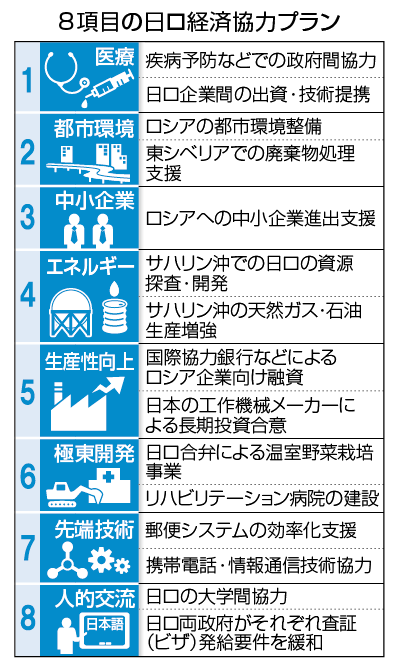 ①日露経済協力8項目 → ②日露平和条約 → ③北方領土(2島返還?)