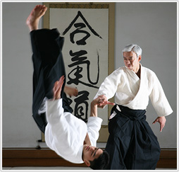 前の人に媚びを売る姿勢から振り向きざまに背後の人に土下座するとか。合気道(Aikidō)の神様 塩田剛三