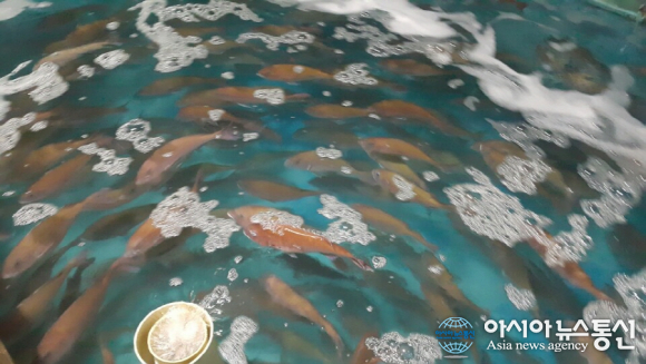 >日本産活マダイの卸価格(kg当り)は1万9000ウォン、国内産は1万5500~1万6000ウォンで3000ウォン台の差がある。しかし、日本産タイの品質が良くて国内消費者の選好度が高い。