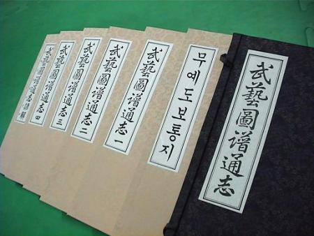 3권 - 베는 무기 종류: 제독검(提督劍), 본국검(本國劍),쌍검(雙劍), 마상쌍검(馬上雙劍), 월도(月刀), 마상월도(馬上月刀), 협도(挾刀), 등패(藤牌)