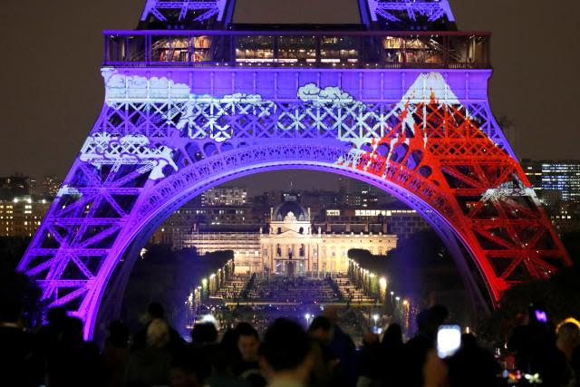 [パリ 13日 ロイター] - フランスのパリで13日、日仏友好160周年を記念して開催中のイベント「ジャポニスム2018」の一環として、エッフェル塔の特別ライトアップが行われた。