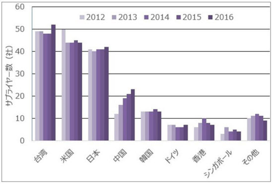 アップルサプライヤーとして掲載された269社中、台湾企業は71社、米国企業は60社、日本企業は55社である。