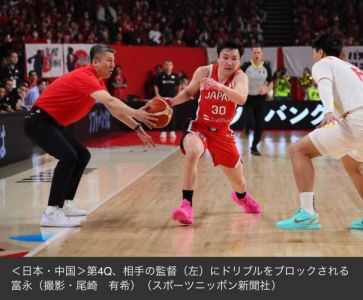 バスケットボール男子日本代表(世界ランク22位)が27年バスケットボール男子ワールドカップ(W杯)アジア1次予選3戦目で中国(同ランク27位)と対戦。桶谷大ヘッドコーチ(HC、48)の初戦は前半14点リードしながらも逆転負けを喫した。桶谷HC新体制は黒星発進となった。中国監督の“ありえない行動”にネットが騒然とした。