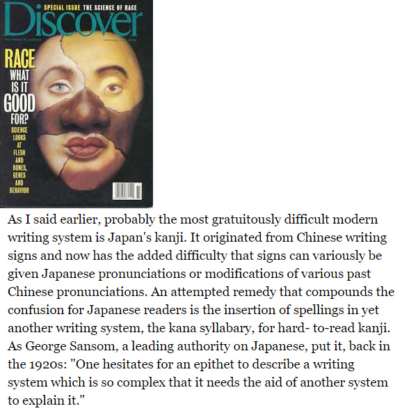 すでに述べたように、無駄なく最も困難な現代の表記システムは、日本の漢字(kanji)です。