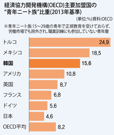 OECDニート率、韓国は、堂々の第3位