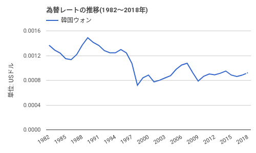 http://ecodb.net/exec/trans_exchange.php?type=EXCHANGE&b=USD&c1=KRW&ym=Y&s=1982&e=2018こういうスレで議論したいんだけど、朝鮮人は興味ないというか、知識不足で話が続かないんだよな。