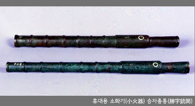 まず、朝鮮の文献などに出てくる朝鮮製の銃は火縄銃のようなマスケット銃ではなく、モンゴルで使っていた【てっぽう】のようだ。(添付画像参照)